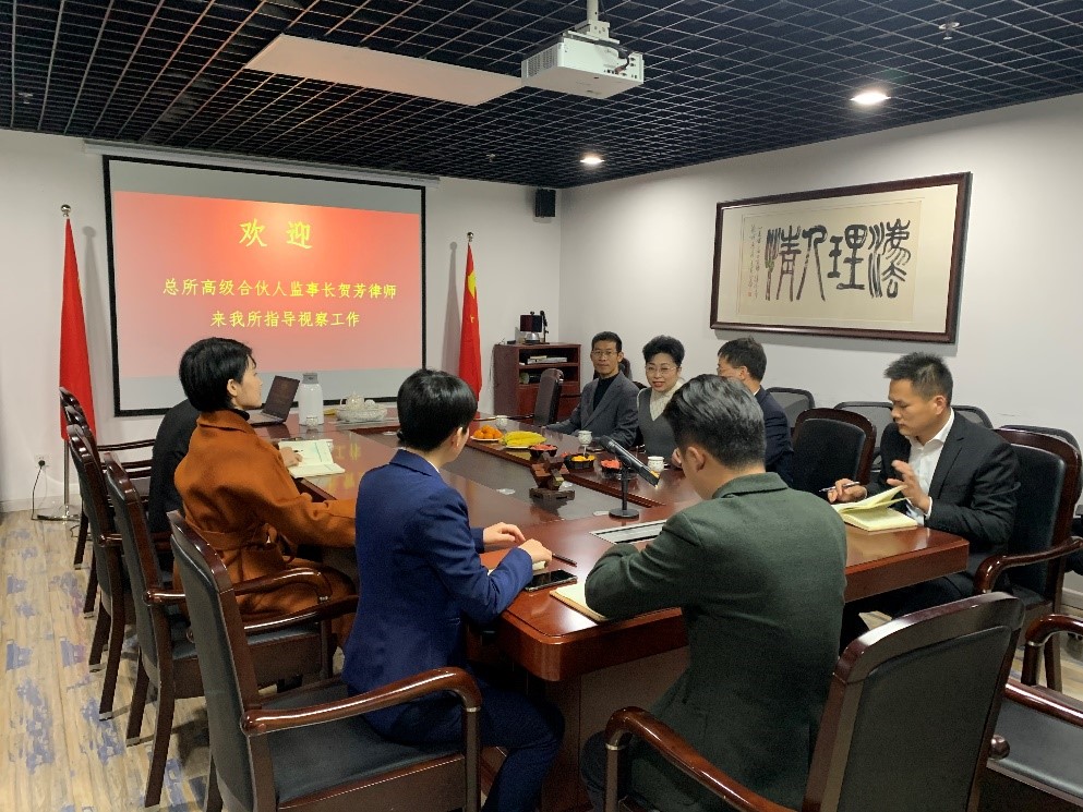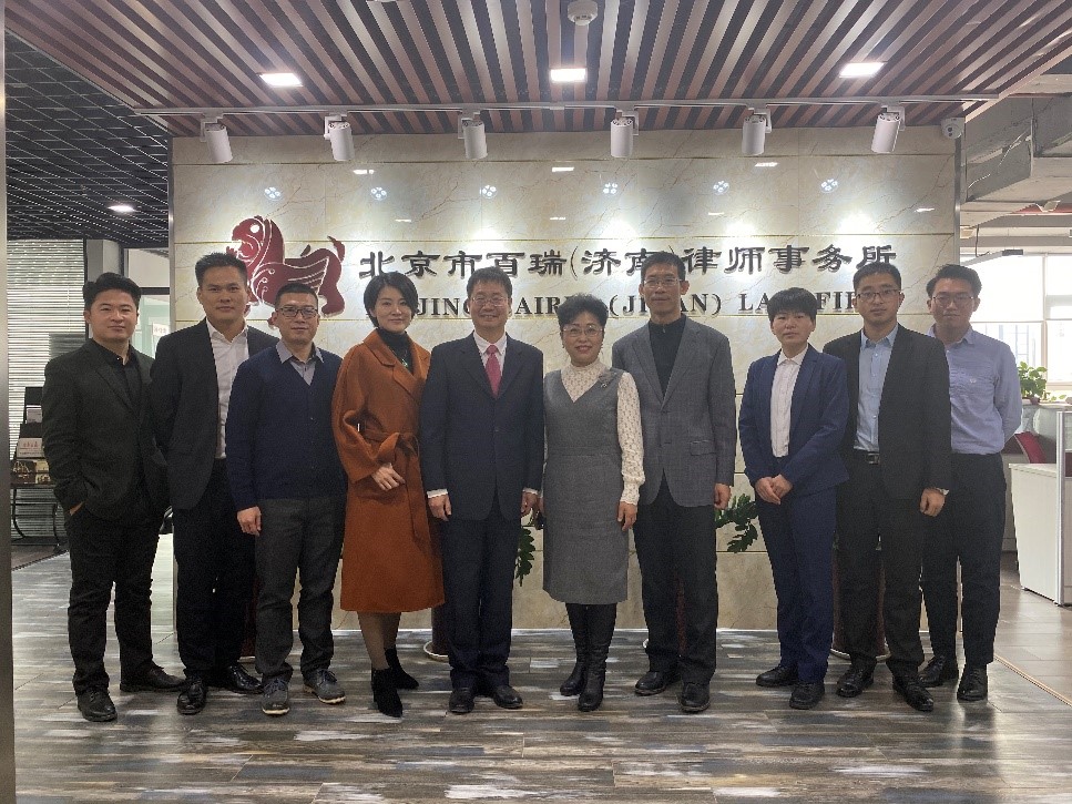 2020年11月25日上午,北京市百瑞律师事务所高级合伙人监事长贺芳律师莅临济南分所考察指导。济南分所主任孙志新、管委会主任王新升、高级合伙人吴峰等人参加了座谈交流。