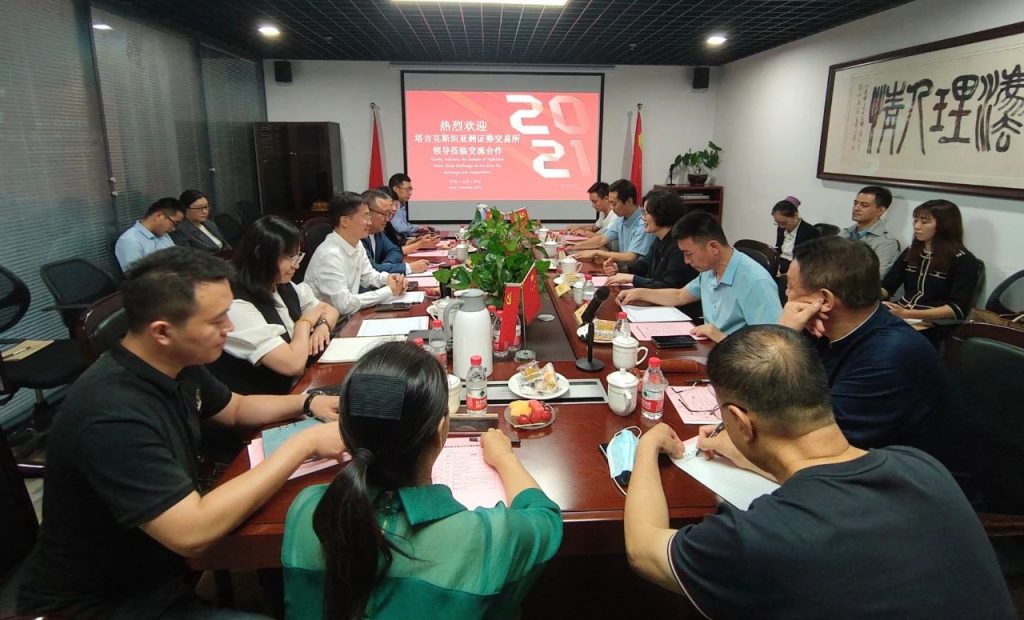 2021年9月2日,正向蓝合(山东)控股集团有限公司董事长赵建英与塔吉克斯坦亚洲证券交易所国际业务发展部总经理袁...